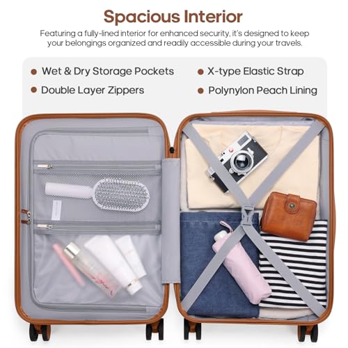 Maximized Storage & Organization : Maximized storage in this 20-inch carry on luggage includes 2 compartments, compression straps for clothing, and a separate pocket for smaller essentials. The matching backpack adds functionality with its own spacious compartments, designed to keep your travel essentials. This set is perfect for travelers who need both organized storage and on-the-go convenience.