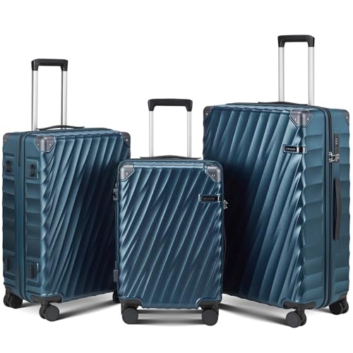 Caselly Luggage sets 3 piece with Spinner Wheels, PC+ABS Hard Shell Trip Luggage, Carry On suitcase with TSA Lock,YKK Zippers,Charcoal Metallic (Navy, 3 Piece Sets(20/24/28))