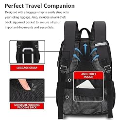 Great Commute Backpack with Luggage Strap&Hidden Anti Theft Pocket — A Luggage belt design on the back of the book bag helps to free your hand and back by fixing the laptop bag on the trolley of your luggage, will make your traveling and business go back and forth more convenient. With a Hidden Anti Theft Pocket on the back of backpack protect your valuable items from thieves. Well made for international airplane Commute and day go back and forth.