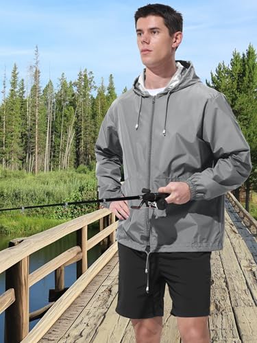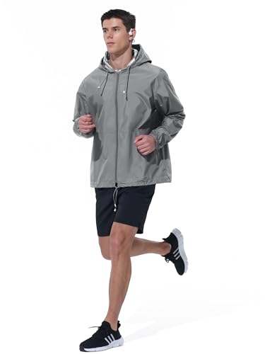 Mens Rain Jacket Raincoat Windbreaker Running Waterproof Lightweight Packable with Hood Travel Hiking Cycling