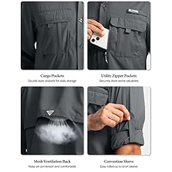 Men’s Sun Protection Fishing Shirts Long Sleeve Travel Work Shirts for Men UPF50+ Button Down Shirts with Zipper Pockets