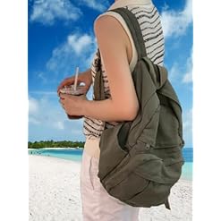 Military Green Canvas Backpack for Women & Men Retro Aesthetic Rucksack Basic Backpack for High School/College Students Travel Laptop Bag