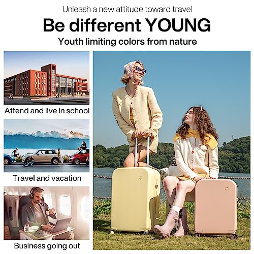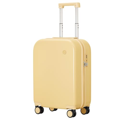 mixi Carry on Luggage, 20” Suitcase Spinner Wheels Luggage Hardshell Lightweight Rolling Suitcases PC with Cover & TSA Lock for Business Travel, Lark Yellow