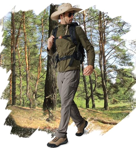 MOURCE Hiking Pants Men Lightweight Quick Dry – Water Resistant Stretch Cargo Travel Pants for Men with 6 Pockets