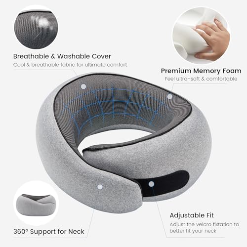 Neck Pillow Airplane,100% Pure Memory FoamTravel Neck Pillow Travel Neck Support Ergonomic &Portable Design Best for Sleeping Plane Car Train Office Flight (Small Grey)