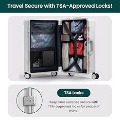 Strong & Lightweight: Built with a reinforced aluminum frame and impact-resistant polycarbonate shell, this lightweight 8.15 lb zipperless carry-on is ultra-durable. Dual TSA-approved locks provide extra security, keeping your belongings safe during travel.