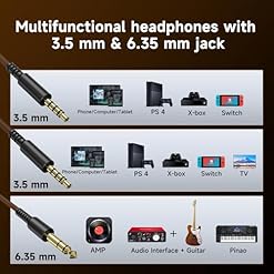 NO MORE ADAPTER: DJ style coiled cord (9.8Ft Stretched) easily reaches from the TV or stereo to your chair. A standard-sized 6.35mm plug and a 3.5mm plug are included. They both are completely detachable, you can plug in the mixer you want to use.