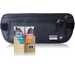 Peak Gear Travel Money Belt. Premium Quality Travel Wallet with RFID Blocking Fabric to Protect Credit Cards, Passports and Documents. Exclusive Theft Protection and 2 Recovery Tags | Black