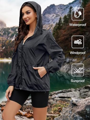 Rain Coats For Women Waterproof Light Rain Jacket With Hood Packable Women Windbreaker Jacket With Pocket S-XXL