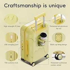【Cup holder and USB Port】This hard-sided luggage case is equipped with a cup holder, providing convenient storage for drinks. Additionally, this checked luggage features an external USB charging port and an internal built-in charging cable. Roaming go back and forth luggage provides you with a more efficient and convenient solution for charging your electronic devices throughout trips.
