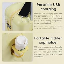 【Cup holder and USB Port】This hard-sided luggage case is equipped with a cup holder, providing convenient storage for drinks. Additionally, this checked luggage features an external USB charging port and an internal built-in charging cable. Roaming travel luggage offers you a more efficient and convenient solution for charging your electronic devices during trips.
