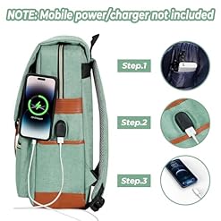 Ronyes Vintage Laptop Backpack for Women Men,15.6 inch Bookbag Casual Daypack with USB Charging Port for College Work, Green Backpacks