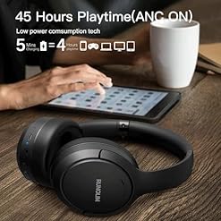 70 HOURS PLAYTIME & BACKUP AUDIO CABLE: Low power consumption technology allows our Bluetooth ANC headphones can continuously play up to 70 hours in standard music mode, up to 45 hours in ANC mode. By included 3.5mm audio cable, you can also change it to wired mode when powers off, no power shortage problem anymore.