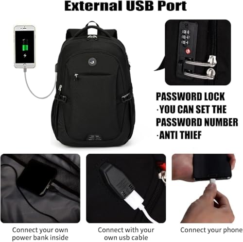 FUNCTIONAL&SAFE: A luggage strap allows travel laptop bag fit on luggage/suitcase, slide over the luggage upright handle tube for easier carrying. Tighten the breast strap can stabilized the center of the gravity of the backpack. Internal shockproof belt for fastening your laptop and iPad, preventing them from sliding and bumping