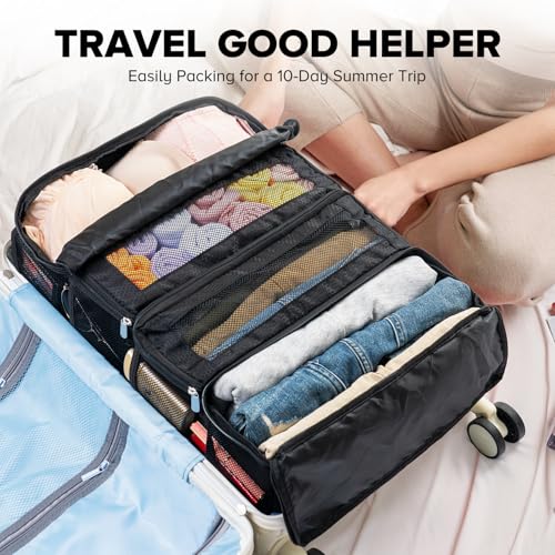 Suitcase Organizer, Travel Luggage Organizer Hanging Shelves Packing Cube Closet/Collapsible Portable Travel Organizer for Carry-on