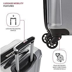 360-Degree Spinner Manuverability: Constructed with 4 premium spinner wheels and a locking aluminum retractable Care for, make the most of its easy pushing and pulling maneuverability to seamlessly get through a crowded airport or down narrow airplane isles.