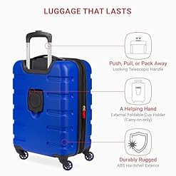 SwissGear 7366 Hardside Expandable Luggage with Spinner Wheels and Cup-Holder is the perfect carry-on luggage for your next commute. This 19-inch suitcase is made of durable ABS and includes co-molded lift handle(s) with soft rubber hand grips for easy maneuverability. The split-case design expands for additional packing space and various internal pockets keep you organized. The eight 360-degree multi-directional spinner wheels and a premium, push-button steel locking telescopic handle make it easy to navigate through the airport. With outside dimensions of 22 x 14.25 x 10 inches including wheels and handles, this suitcase offers 19 x 14 x 10 inches of packing space. This hardside luggage is perfect for those who need a lightweight and durable suitcase for their travels. The hardshell exterior is designed to give protection to your belongings from the wear and tear of commute, whilst the spinner wheels make it easy to move around. The telescopic handle is designed to be comfortable and easy to use, and the internal pockets help you stay organized. Plus, this suitcase comes with a 10-year warranty against defects in materials and workmanship.