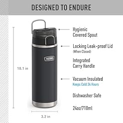 THERMOS ICON SERIES Stainless Steel Water Bottle with Spout – 24 Ounce, Granite – Vacuum Insulated Water Bottle with Lid