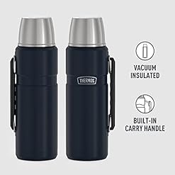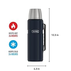 This STAINLESS KING 40oz Beverage Bottle is the very best take-along for family camping and out of doors enthusiasts. The handy serving cup doubles as a lid. Top quality 18/8 stainless steel construction is dependable any time of year for long treks or road trips. The twist and pour stopper feature means easy pouring and a tight seal. Not only will it keep your favorite beverages hot or cold for 24 hours, but 40oz of volume means serving the whole family is a breeze. Exterior stays cool to the touch with hot beverages and sweat-proof with cold. THERMOS brand beverage bottles are dishwasher secure, top rack really helpful. Your new companion for each and every out of doors adventure.
