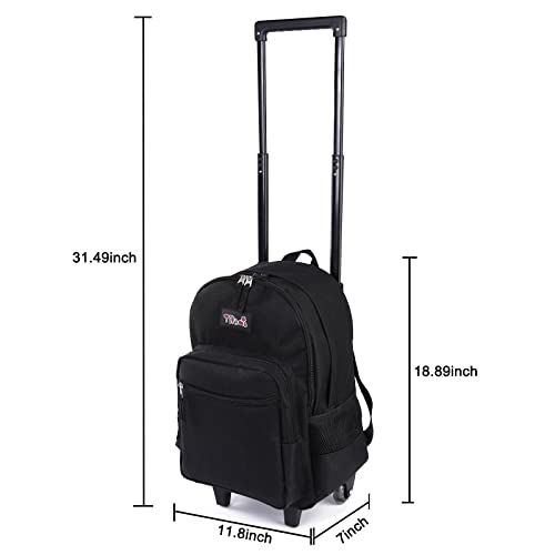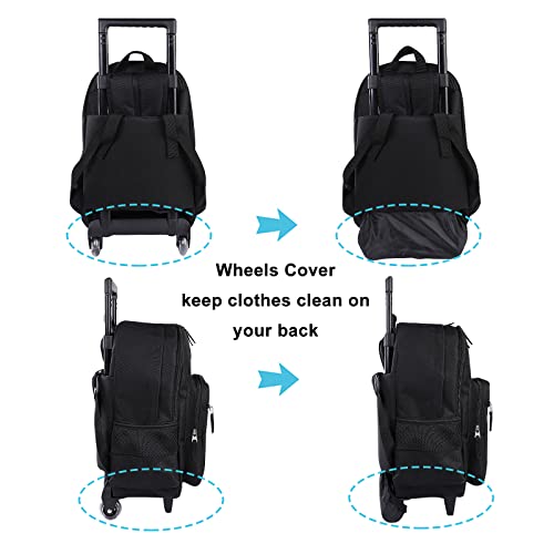 【Size Information】Double hand rolling backpack for boys and girls 18.89” high, side to side width 11.8”, front to back depth 7”, Lunch Bag size: 9.05x 7.48×4.72 inch. this kids luggage is to be had to carry on the roller backpack to the airplane, no necessary to check in when travelling, the wheels are equipped with a cover keeping it from dirty, the cover is hidden in the pocket above the wheels.