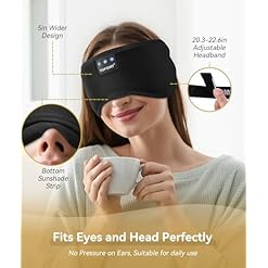 99.99% LIGHT BLOCK OUT: This bluetooth sleep mask for side sleepers adopt bending cartilage design, adjustable and durable. Bluetooth eye mask for sleeping thoroughly blocking lights coming from the nose area, get sound sleep or nap everywhere! Extra cushion makes sleep mask headphones and nose touch better, which completely block light. Sleep mask bluetooth best for frequent flyers to sleep on long flights or sensitive sleepers (insomnia) who dislike glaring lights in any occasions