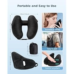 3-Second Inflation Neck Pillow Airplane: Patented Valve Holds Air All Day—Adjust Firmness (80-90% Full) for Cloud-Like Comfort Anyplace!