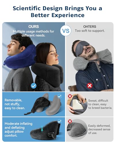 3-Second Inflation Neck Pillow Airplane: Patented Valve Holds Air All Day—Adjust Firmness (80-90% Full) for Cloud-Like Comfort Anywhere!