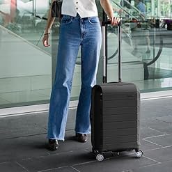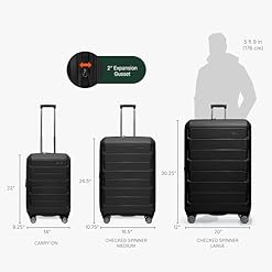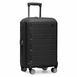 Traveler’s Choice Pagosa Indestructible Hardshell Expandable Spinner Luggage, Black, 22″ Carry-on