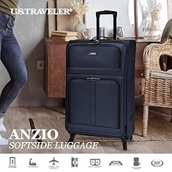 U.S. Traveler Anzio Softside Expandable Spinner Luggage, Navy, Checked-Large 30-Inch