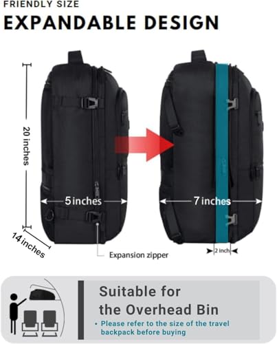 Sturdy & Lightweight: Men’s airline approved carry on backpack is made of lightweight water-resistant polyester and anti-scratch material, which can provide protection on drizzle days. Zippers are easy to close and open. Regular size is 20*14*7 inches and weight is 2.09 lbs. This 40 l travel backpack meets the carry-on size standards of airlines such as Southwest, Spirit, JetBlue, and Frontier Airlines, and can be stored in the overhead compartment