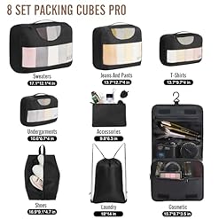 Veken 8 Set Packing Cubes for Travel Essentials, Suitcase Organizer Bags in 4 Sizes, Carry-On Luggage Accessories with Large Laundry & Hanging Toiletry Bag, Must-Have for Airplane, Road Trip & Camping