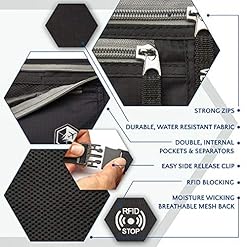DURABLE & ADJUSTABLE – Fits up to a 56″ waist with a completely adjustable strap. Comprised of water resistant 210D ripstop nylon with reinforced seams and safe zippers for lasting reliability.