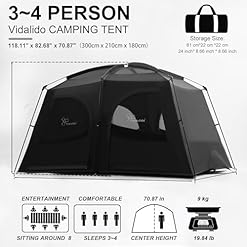 Vidalido Tents,3-4 Person Camping Tent with Extended Vestibule,Weather Resistant Family Tents with Breathable Mesh Windows,Easy Install Waterproof Outdoor Tent for Backpacking and Camping Hiking