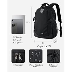 20L Basic Backpack: Features dimensions of 16.9″×11″×5.5″, space with a 16-inch laptop sleeve. Features an independent front pocket, multi-function inner pockets, outer zippered pocket. Side pockets for bottles and a hidden back pocket for easy storage.
