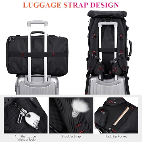 Multifunctional Carrying On Backpack: This men rucksack come with an adjustable and removable shoulder strap, can be utilized as a duffel bag. Versatility pocketto keep your items organized and easy to seek out. Suitability shuttle partner for men women who like international shuttle, camping,overnight commute.