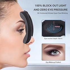 100% Blackout: Unique 3D contoured feature, prevent any type of light, a protective curve with effective space, not touch your eyelids and eye makeup, no pressure on eyeballs, open your eyes freely.