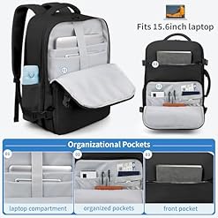 Large Capacity & Multiple Pockets: The travel backpack designed with multi functional pocket for 3-5 days travel necessities. It has main pocket, wet clothes pocket, interior pocket, side pockets, laptop compartment, organized pocket, front pockets making your items organized and easy to find. Separate laptop compartment of college laptop bookbag holds 15.6 inch laptop and 12.9 ipad. The built-in elastic bands of main pocket keep your clothes from falling